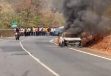 Burning Car : चलती कार बनी आग का गोला, नेशनल हाईवे पर मची अफरा-तफरी